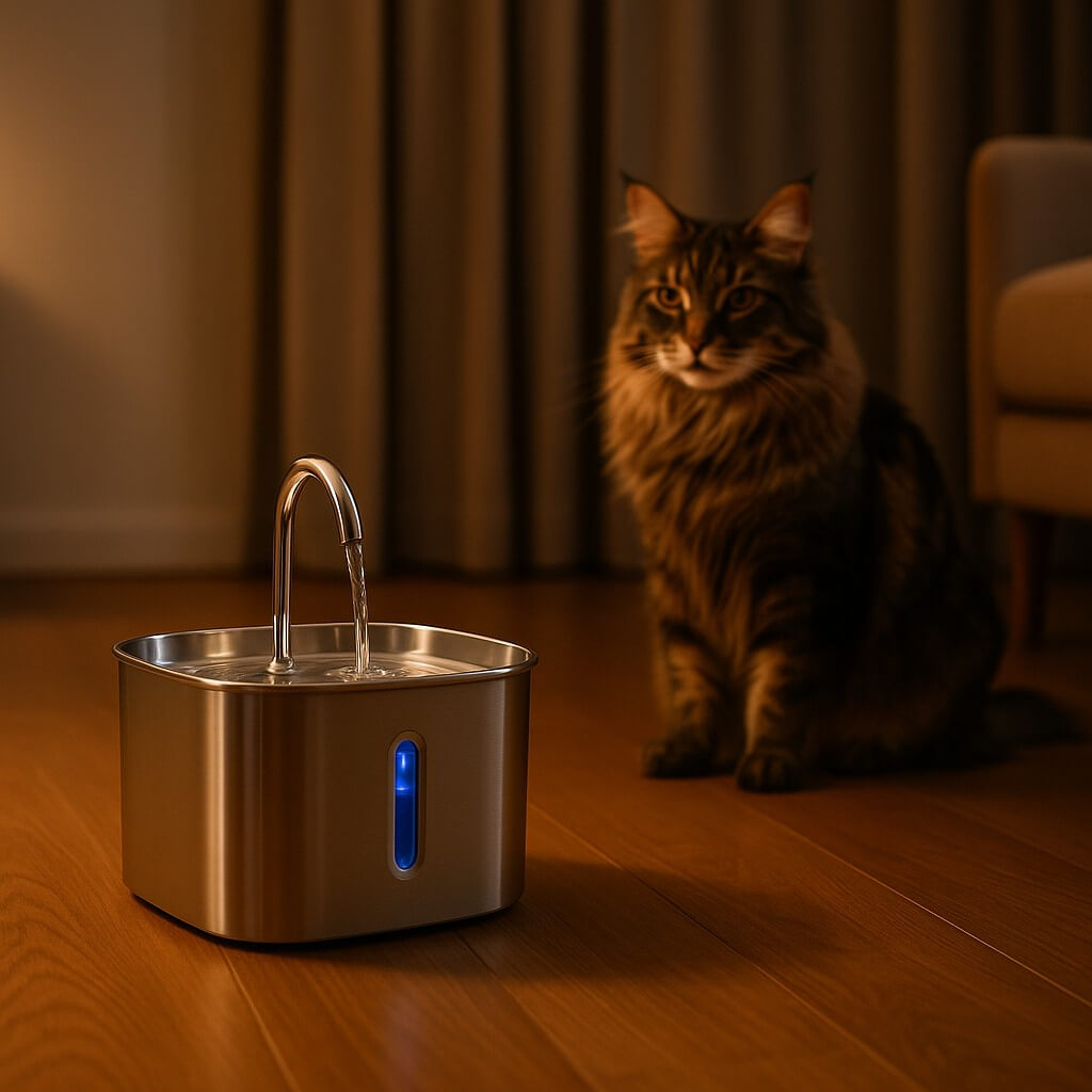 Grâce à sa pompe optimisée, la fontaine reste presque inaudible — même la nuit.