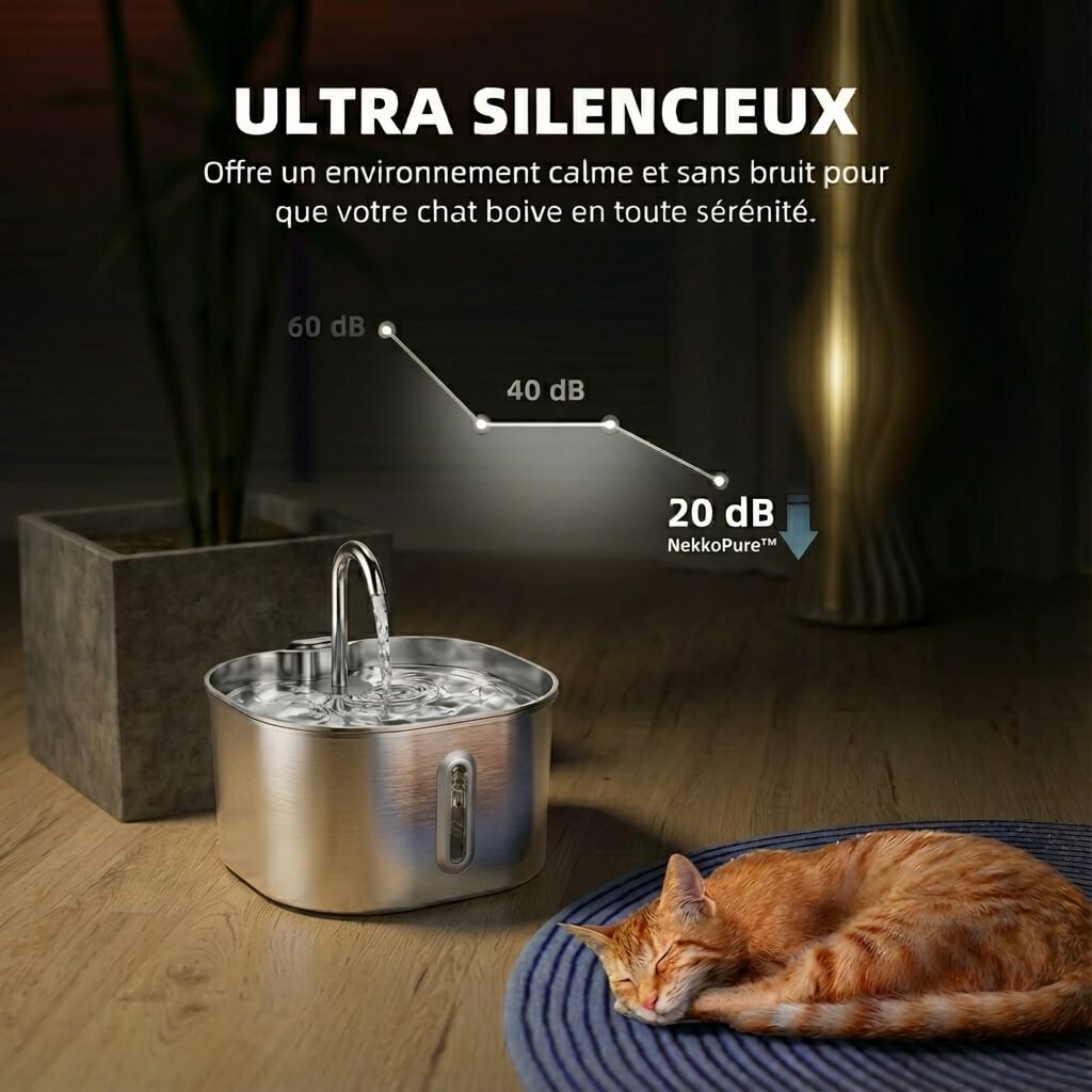 Mon chat ne buvait presque jamais, j'étais inquiète. Depuis la fontaine, il y retourne 5 à 6 fois par jour. Je dors mieux aussi car elle est vraiment silencieuse.